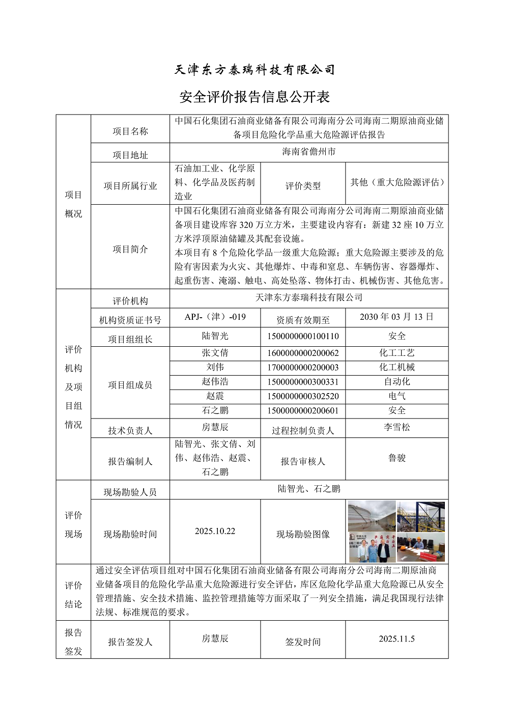 中国石化集团石油商业储备有限公司海南分公司海南二期原油商业储 更新时间:2025-12-15 点击:29 所属栏目:项目公示 Update Time:2025-12-15 Hits:29 Belong Column:Project publicity