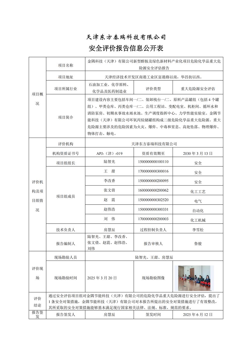 金隅科技(天津)有限公司新型醇胺及绿色新材料产业化项目危险化学品重大危险源安全评估报告 更新时间:2026-01-08 点击:153 所属栏目:项目公示 Update Time:2026-01-08 Hits:153 Belong Column:Project publicity