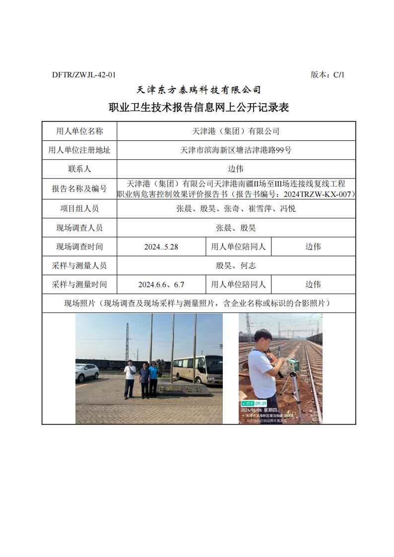 天津港(集团)有限公司天津港南疆Ⅱ场至Ⅲ场连接线复线工程职业病危害控制效果评价报告书(报告书编号:2024TRZW-KX-007) 更新时间:2026-03-13 点击:13 所属栏目:项目公示 Update Time:2026-03-13 Hits:13 Belong Column:Project publicity